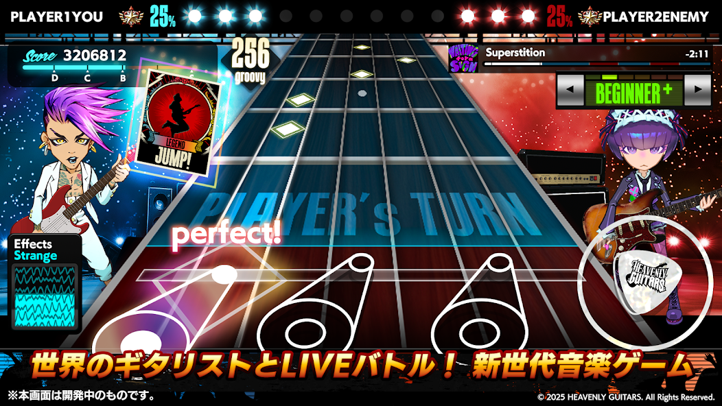 『Heavenly Guitars』のバトルは、ただリズムを刻むだけじゃないんだ!対戦中に自由に難易度を変えられて、相手のプレイを読みながら自分のスコアをガツンと伸ばせるのが最高に熱いポイントなんだよ!